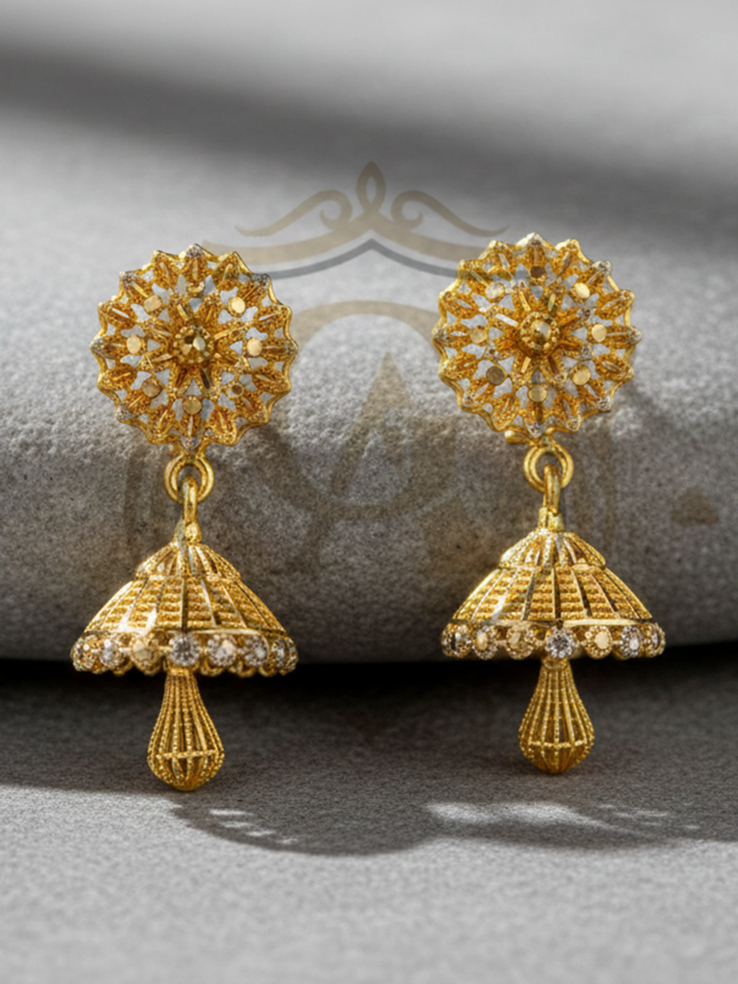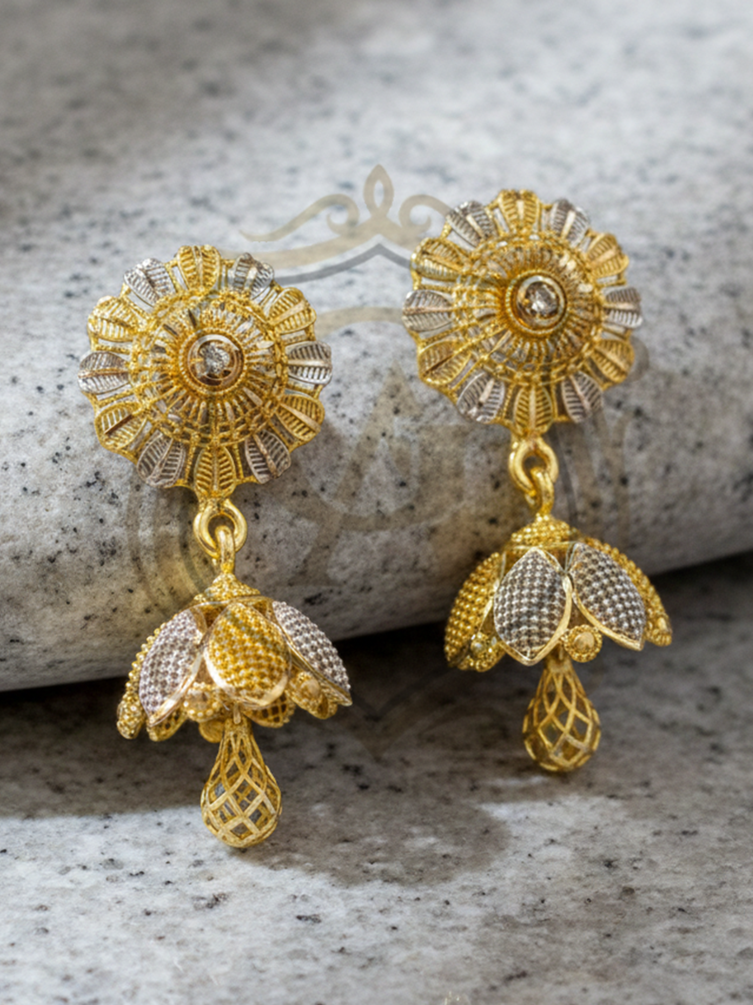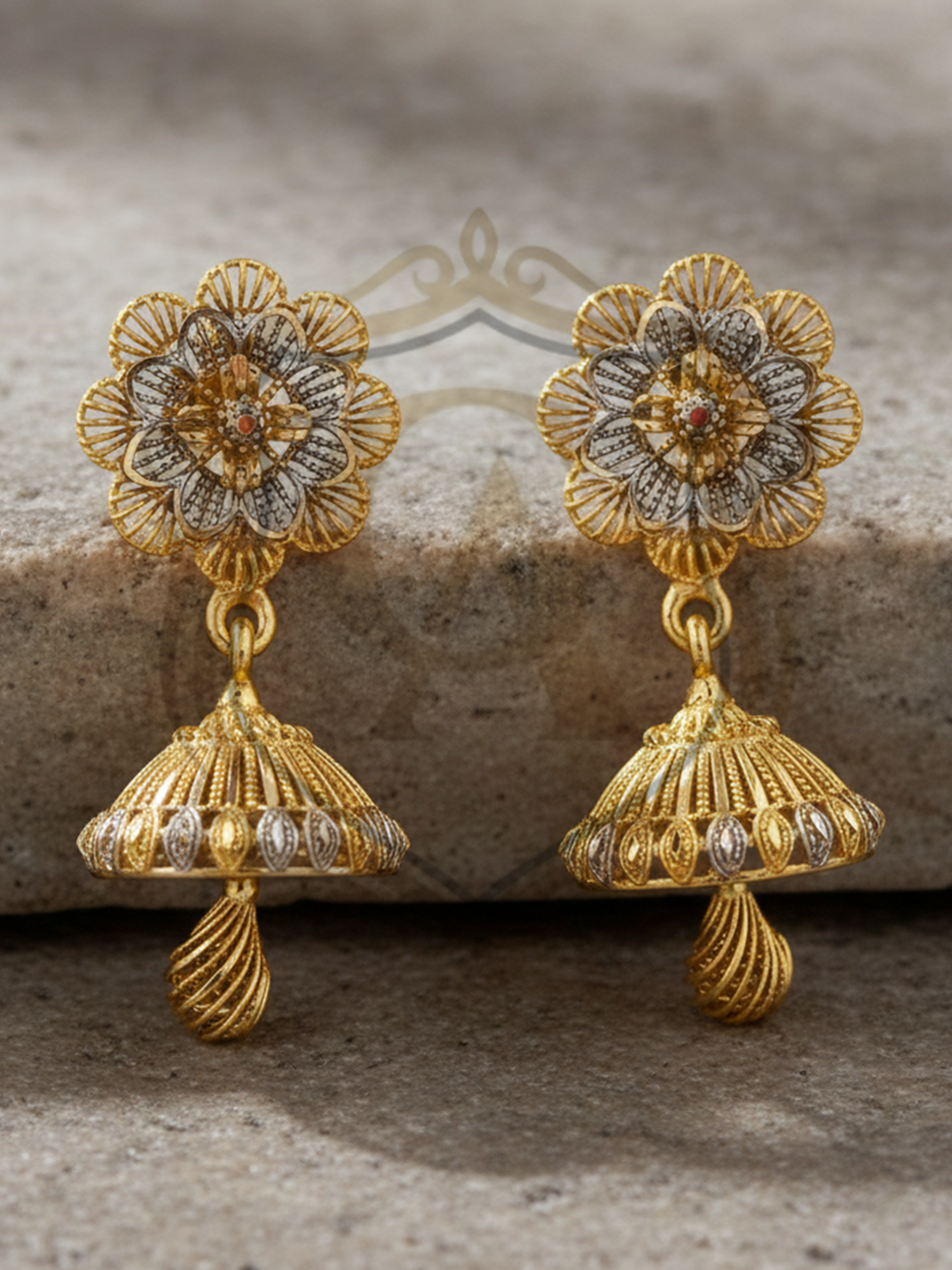 Design: Floral top with intricately carved traditional jhumka drop