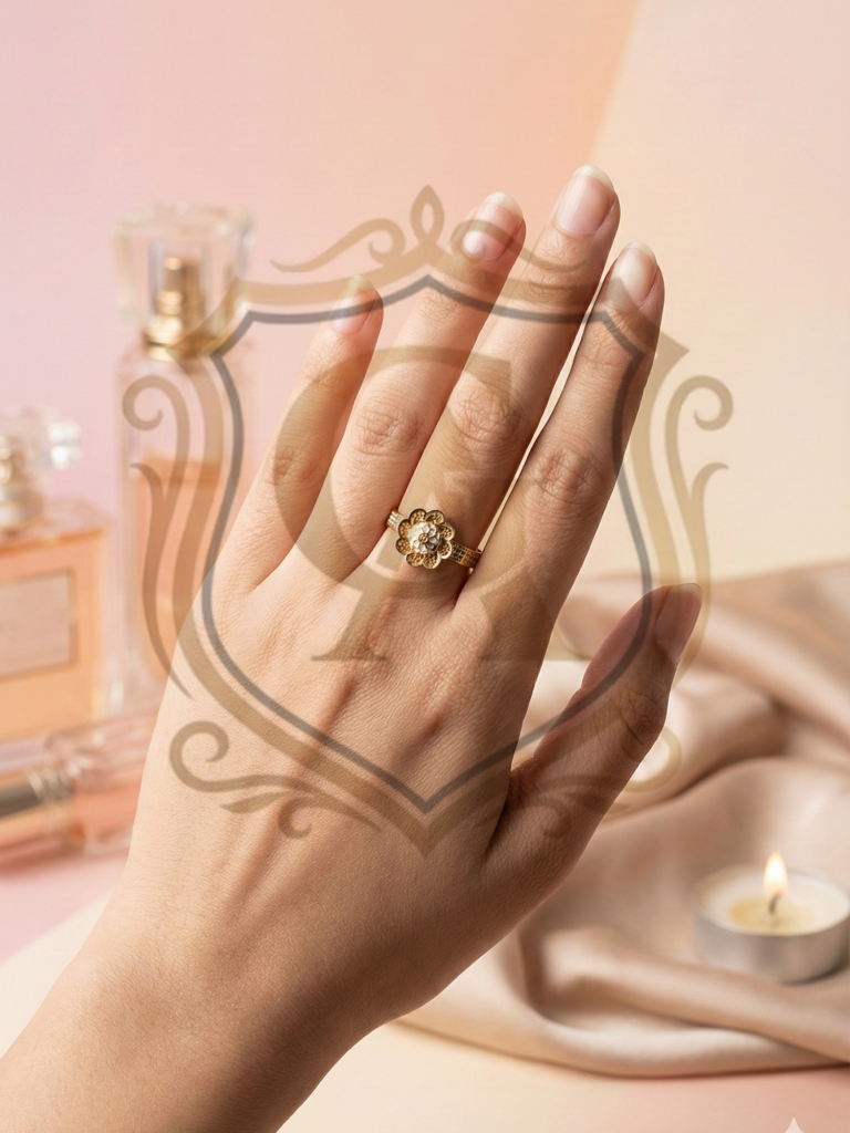 This stunning gold floral ring showcases a beautifully crafted bloom design that adds a touch of femininity and sophistication to any look. Its delicate detailing and radiant finish make it perfect for everyday wear as well as special occasions. The ring sits gracefully on the finger, enhancing the hand’s natural elegance. Whether worn alone or paired with other jewelry, it brings a refined charm to any style.