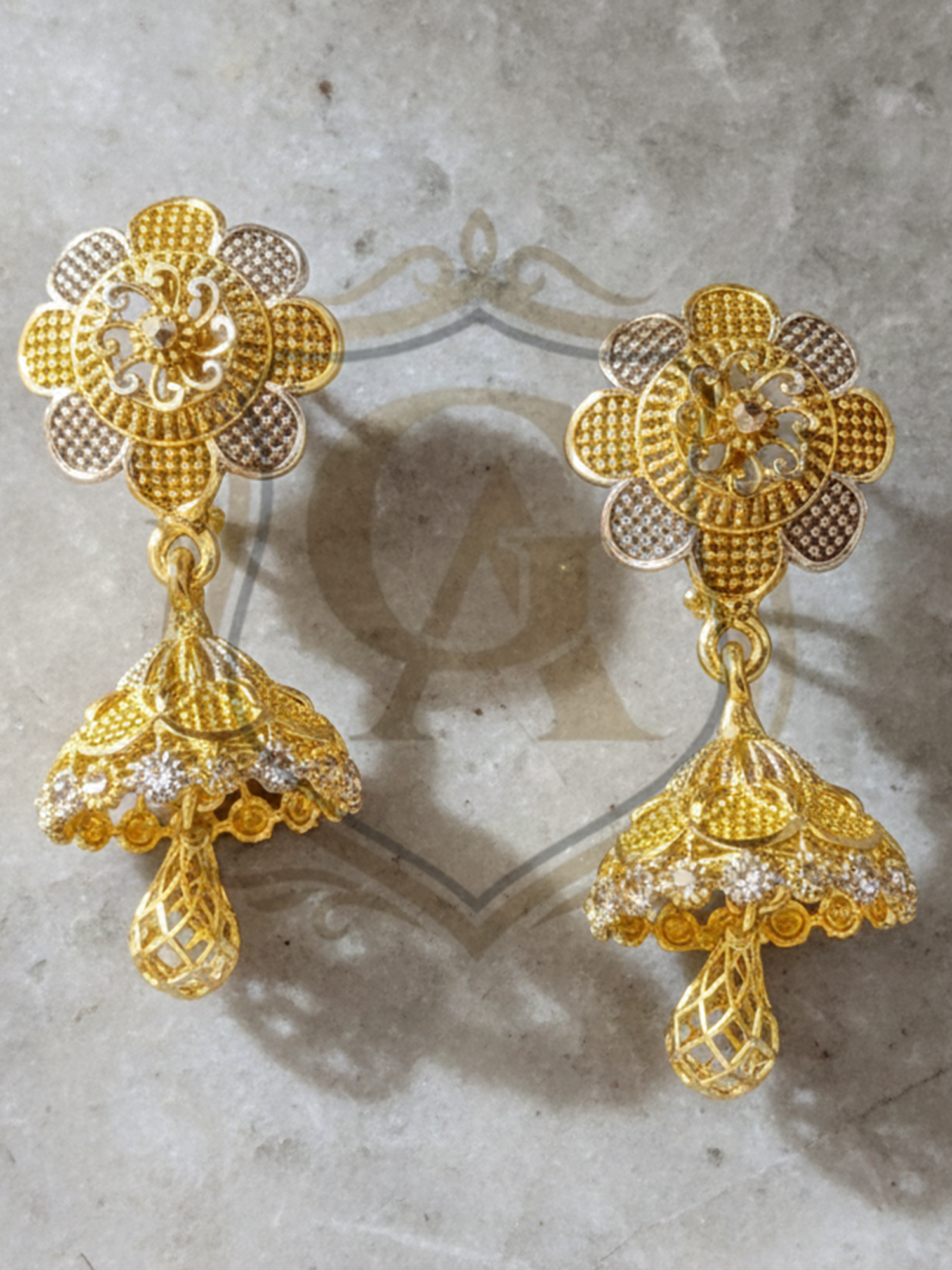Dual floral motifs with drop detailing