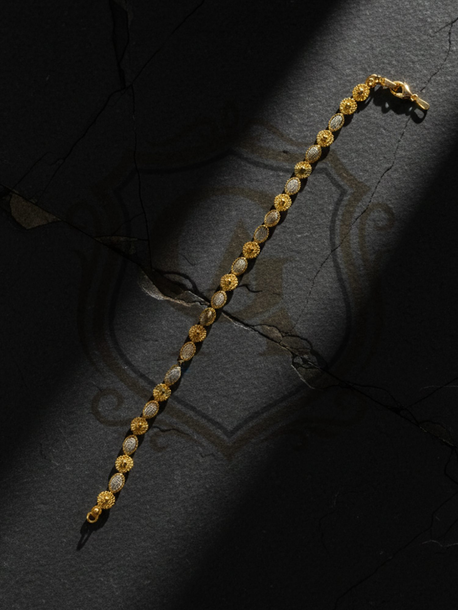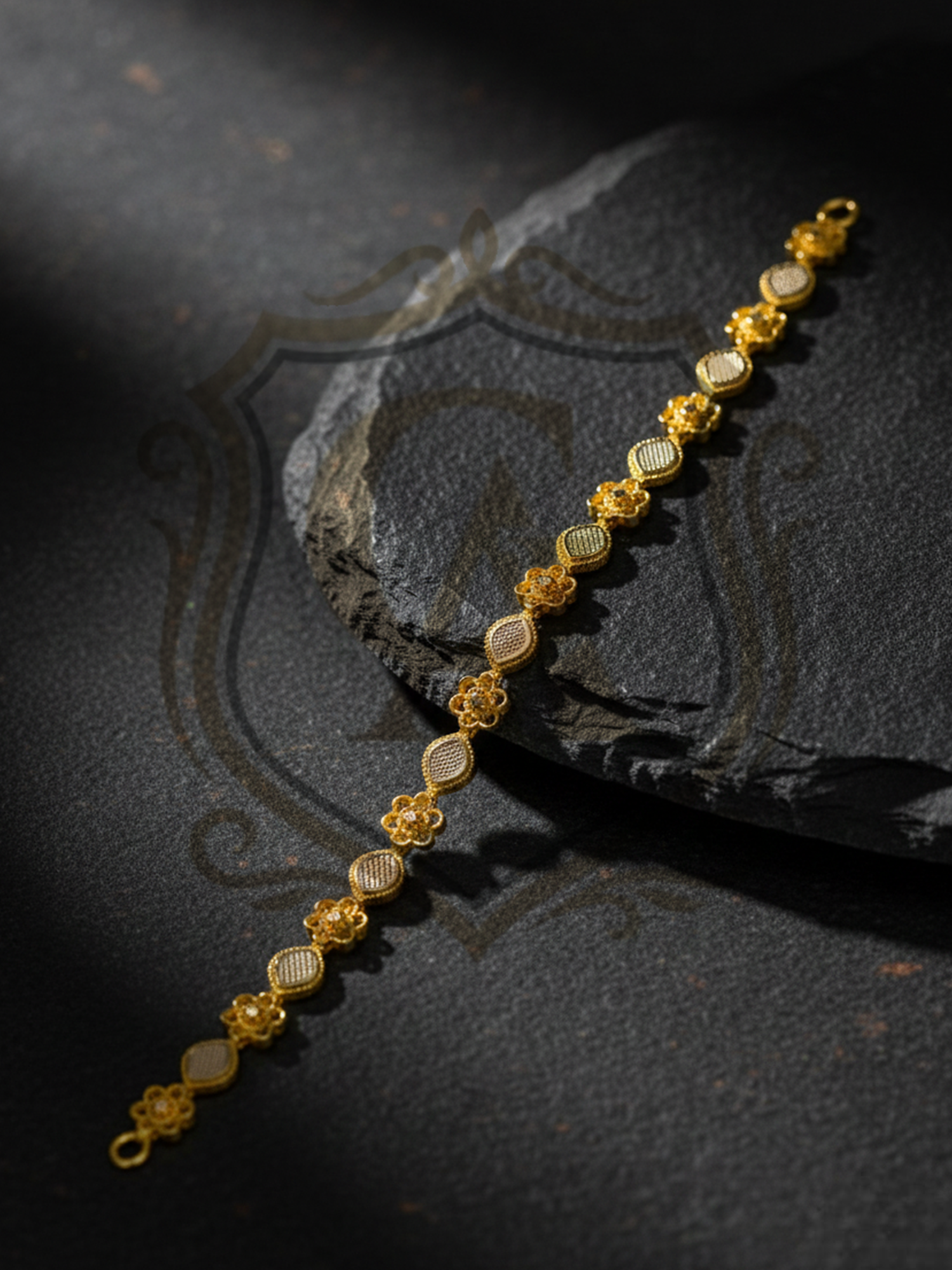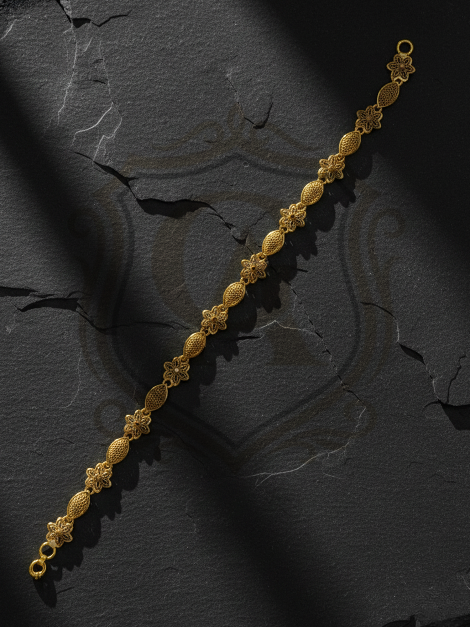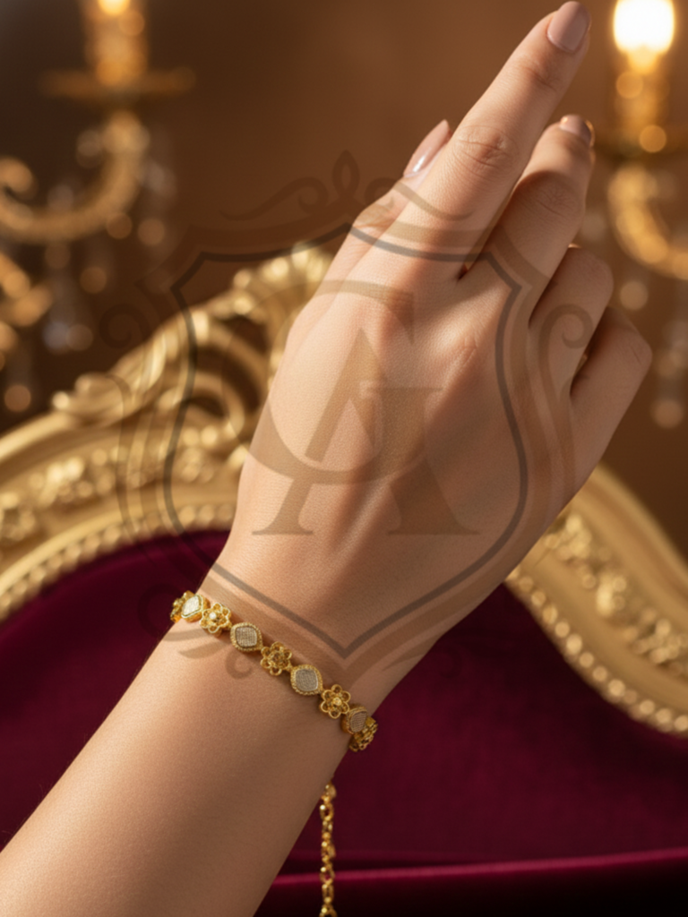 This beautifully crafted bracelet blends floral charm with a regal design, making it perfect for women who love subtle luxury. Its lightweight feel and timeless shine ensure it complements any outfit effortlessly—whether for everyday wear or a special celebration.
